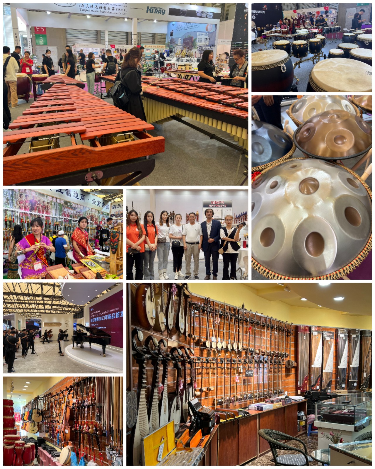 蘇杭琵琶、柳琴、阮、嗩吶、竹笛、葫蘆絲,蕭,定音鼓,花盆鼓,腰鑼鼓喧天,笙歌婉轉,百余種民族樂器,古韻雅風,國樂飄香。